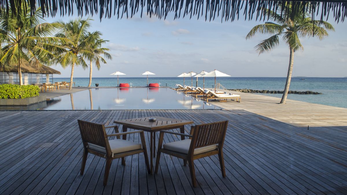 Páratlan kilátás nyílik az Indiai-óceánra a vízre épített villákból, amely közvetlenül a kék lagúna felett helyezkedik el. A nagyméretű napozóteraszról gyönyörködhetnek a vendégek a napfelkeltében és közvetlenül a tengerbe csobbanhatnak. Fedett és kültéri zuhanyzó, valamint szabadon álló kád szolgálja a pihenést. A szobában legfeljebb 2-4 fő elhelyezésére van lehetőség.