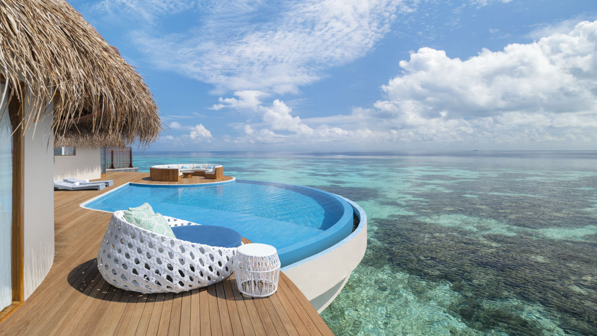 Igény szerint vízre épült, saját napozóterasszal és medencével rendelkező villa is bérelhető, ahonnan a vendégek közvetlenül az óceán türkizkék vízébe csobbanhatnak.
