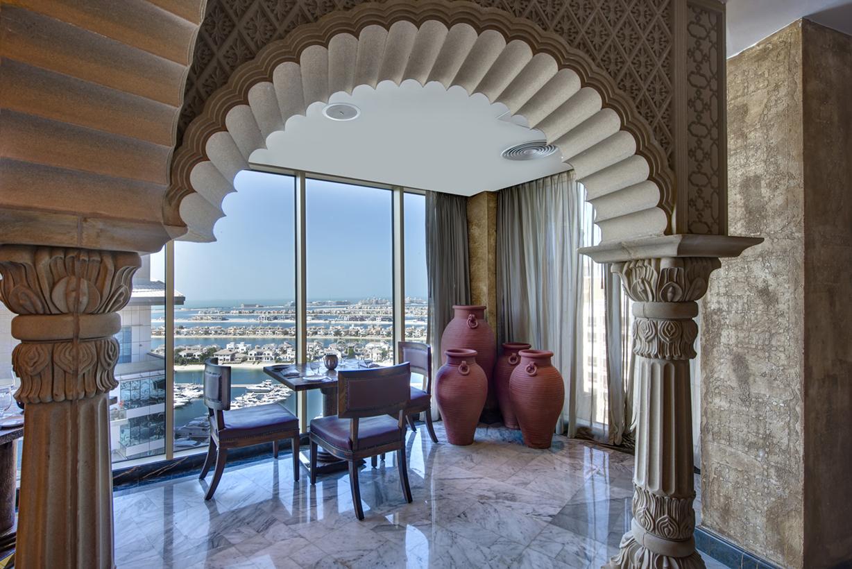 - Gasztronómia, éttermek: Három étterem a brit és az észak-indiai konyha különlegességeivel, valamint New York inspirálta steak house-zal, Dubai-szerte híres bár pazar italválasztékkal, pezsgő és délutáni tea lounge, szivar és whiskey szoba részesíti ínycsiklandó élményekben a vendégeket.