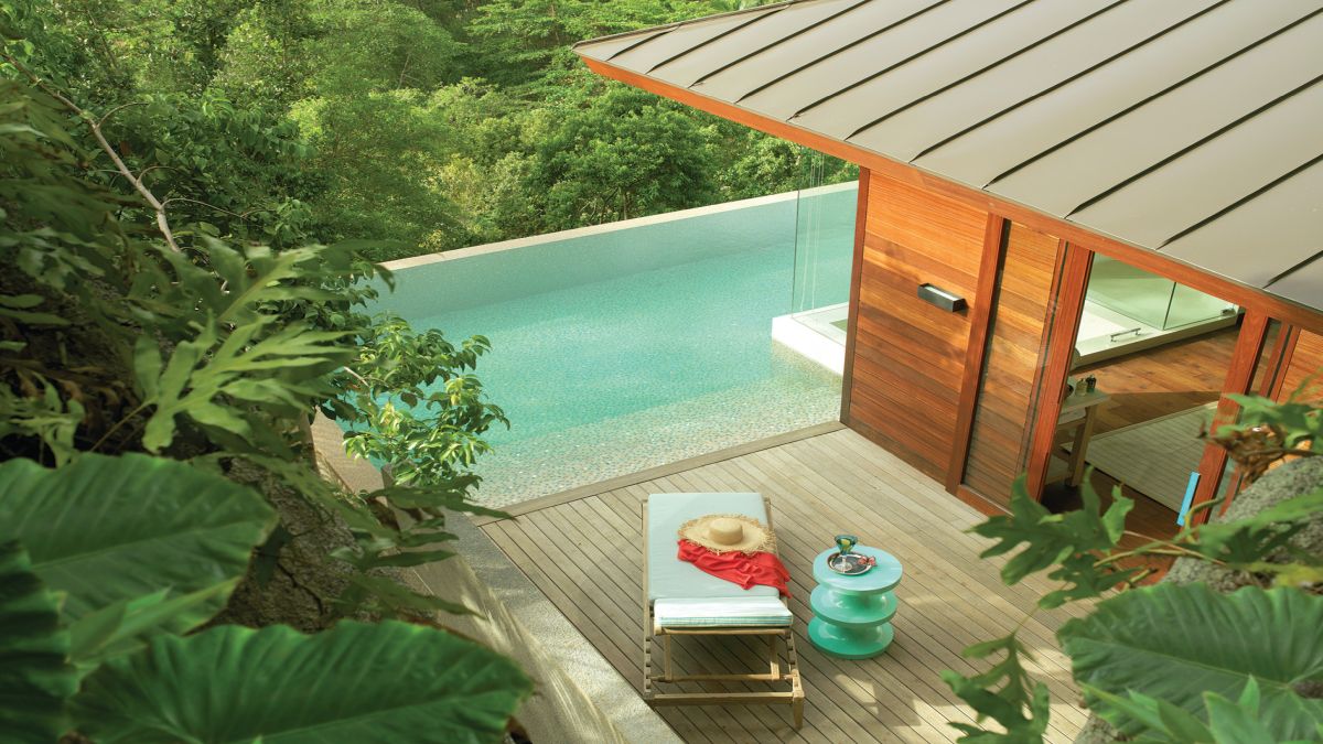 Az óceánra néző, domboldalon elhelyezkedő elegáns villák alapterülete kb. 180 négyzetméter(a privát kert- és medencerésszel együtt). Felszereltsége: légkondicionáló, zuhanyozó, fürdőkád, minibár, széf, televízió, kávéfőző, hajszárító, ülősarok, nappali helyiség, ülőbútorokkal felszerelt erkély, napozóterasz, saját medence. Teraszukról a trópusi kertre és az óceánra nyílik panoráma. Ebben a szobatípusban legfeljebb 3 felnőtt, vagy 2 felnőtt és két 12 év alatti gyermek szállásolható el.Óceánra néző villa a dombtetőn