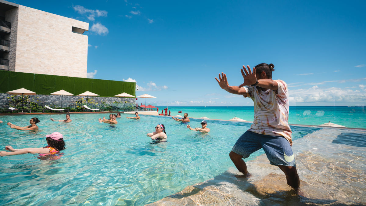 Strand:A Grand Hyatt Playa del Carmen Resort közvetlenül a Karib-tenger partján található, saját, nyugágyakkal és napernyőkkel felszerelt stranddal.Sportok és szórakozás: A szállodához három szabadtéri, tengerparti medence tartozik. A Cenote Spa trópusi környezetben, szauna- és gőzrészleggel, úszófolyosóval, cenote alakú medencével kényezteti a vendégeket. A fitneszközpont modern gépekkel várja a mozogni vágyókat a nap 24 órájában. Egyes szolgáltatások helyszíni térítés ellenében vehetők igénybe.