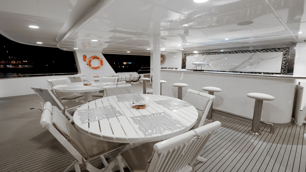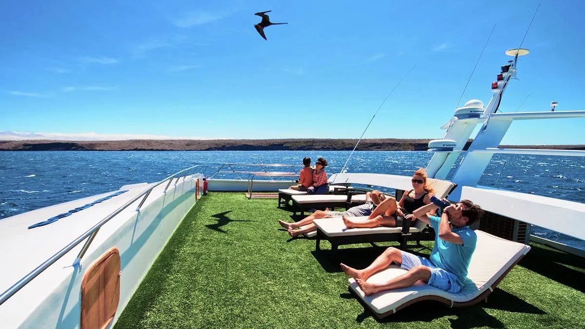 Kora reggel transzfer Quito repülőterére, utazás helyi repülőjárattal Galápagosra. A Galápagos szigetek felfedezésére az egyik legkedveltebb mód a motoros hajóval, jachttal történő utazás, mely során a szállás a fedélzeten van és minden nap más szigetet látogat meg a hajó. Az 5 napos, 4 éjszakás program közeli bepillantást enged e különleges szigetvilágba. A program helyszíne a First Class kategóriájú ANAHI katamarán jacht, melynek fedélzetén és a parti kirándulásokon angol nyelvű idegenvezető biztosított. A megérkezést követően, a déli órákban gépkocsis transzfer a kikötőhöz. Bejelentkezés a jachtra, a kabinok elfoglalása. Ebéd, majd eligazítás a délutáni programokról. Délután a fehér homokú, nyugodt Bahas Beach meglátogatása, mely a tengeri teknősök egyik kedvenc fészkelőhelye. A közelben lévő kis lagúnában flamingók, feketenyakú gólyalábak, rigók, valamint két hajóroncs is megfigyelhető. A part oroszlánfókák, tengeri leguánok és tengeri madarak pihenőhelye. Este üdvözlő vacsora a fedélzeten, szállás a jachton.