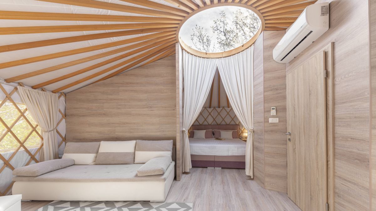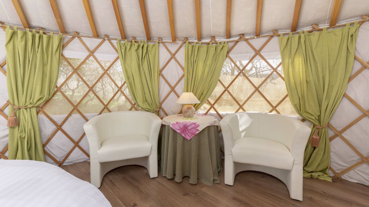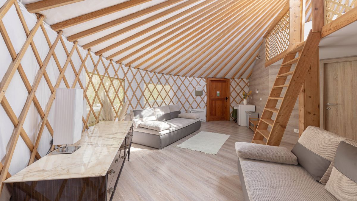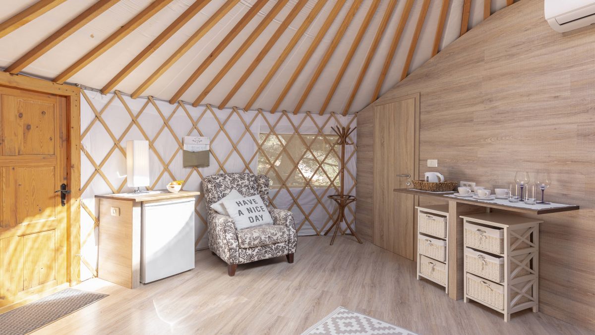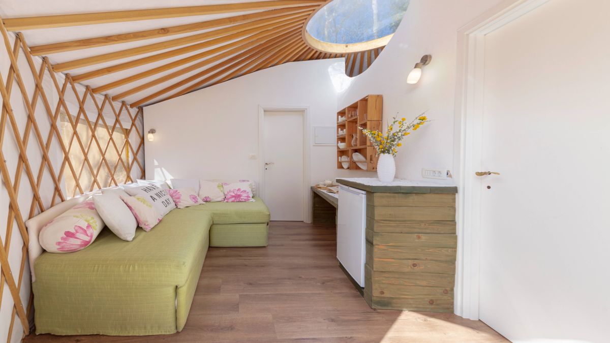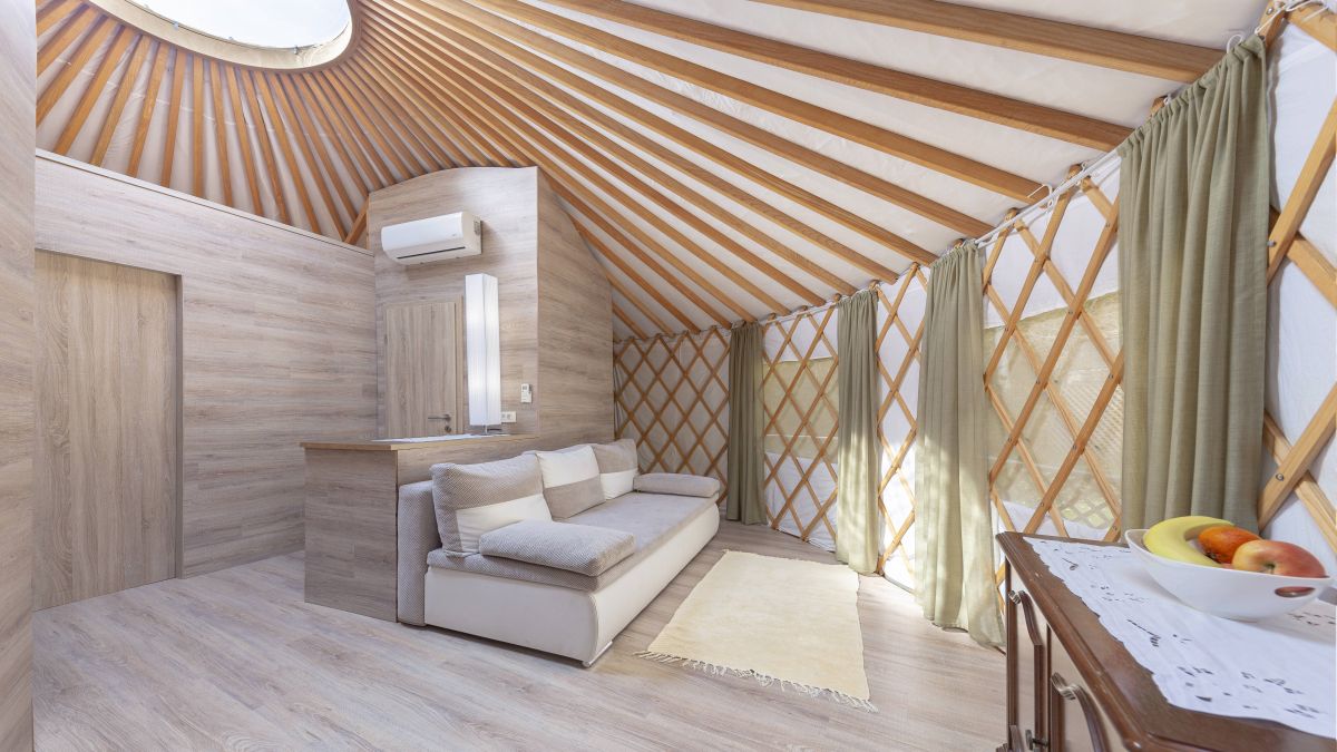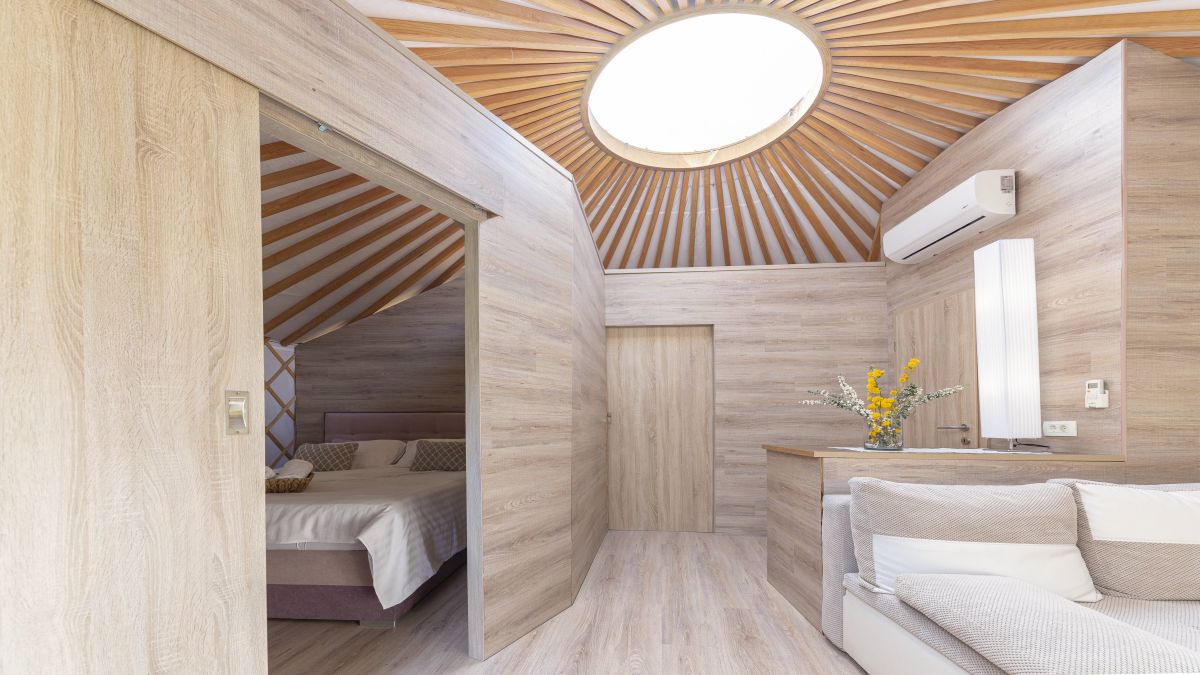 A 30 négyzetméteres jurta kis méretű franciaággyal és kanapéval felszerelt. A jurták privát fürdőszobával vannak ellátva, ahol WC, mosdó és zuhanyzó áll rendelkezésre. Ágynemű és törölköző biztosított. A jurta kupolájának közepe nyitott, így belülről is megcsodálható a csillagos égbolt. A jurta kapacitása 4 fő befogadására alkalmas. Nagyobb, 6 és 8 fő befogadására alkalmas hójurták igény szerint lekérhetők.