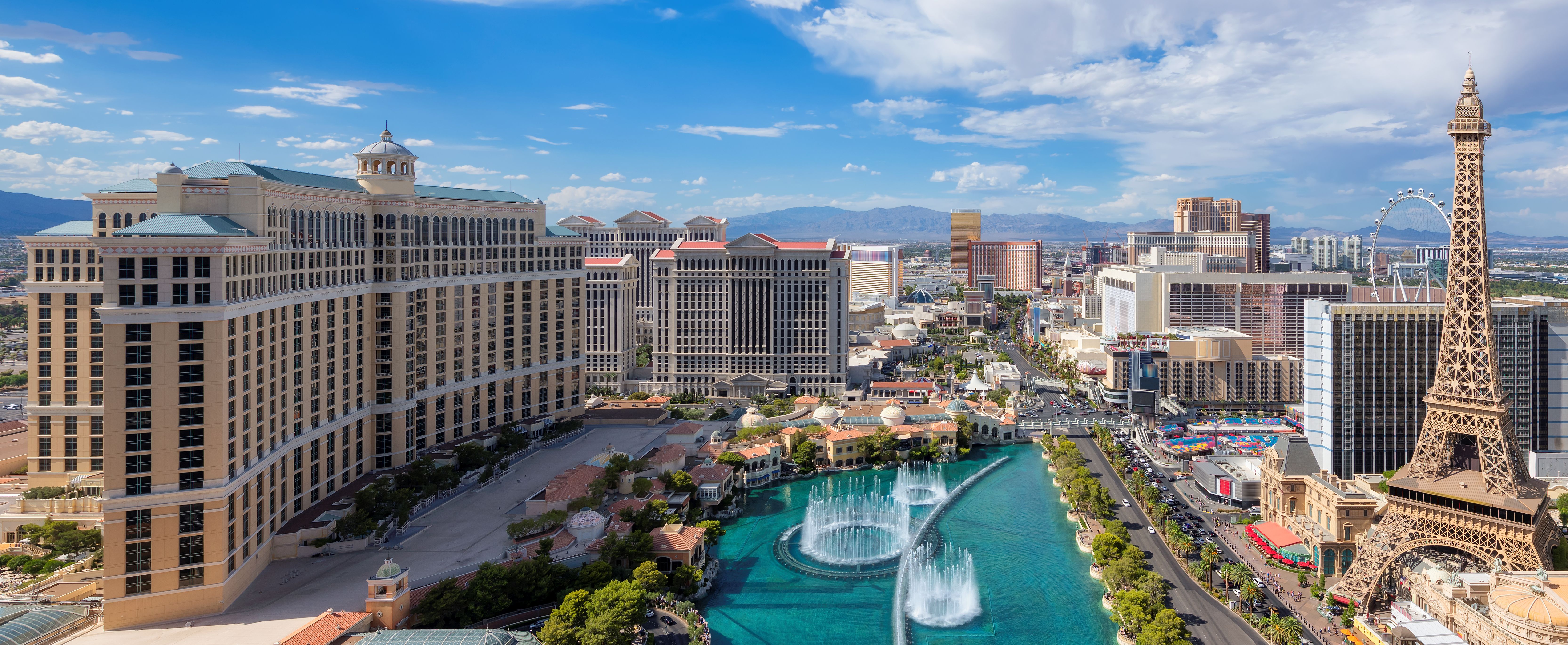 Las Vegas központja a várost nyílegyenesen átszelő Las Vegas Boulevard mentén épült fel. Kifejezetten naplemente után kel életre a neonfényben tündöklő út, melyet mindkét oldalán látványos és hatalmas szállodák szegélyeznek. Minden este ingyenes show műsorok szórakoztatják a közönséget a hotelek előtt, ezek közül leghíresebb az Ocean’s filmekből ismert Bellagio előtt táncoló szökőkút. A szállodák látogathatók, sőt, mindegyik saját bevásárlóközponttal és kaszinóval csalogatja vendégeit.