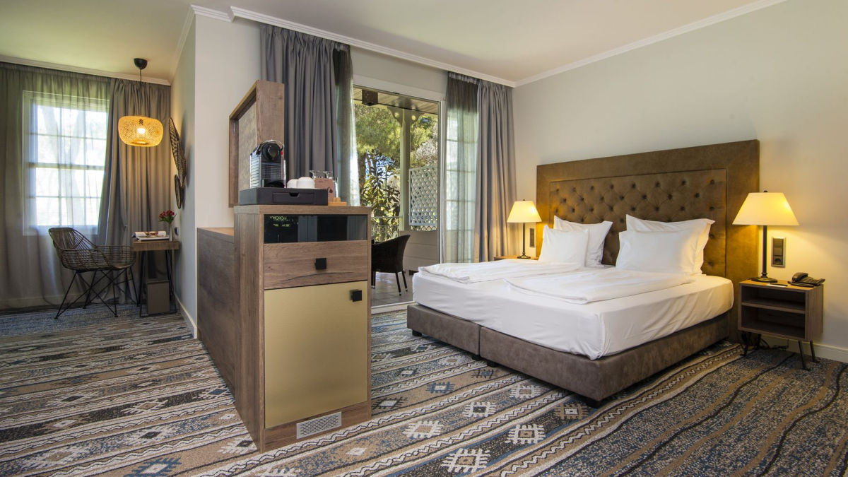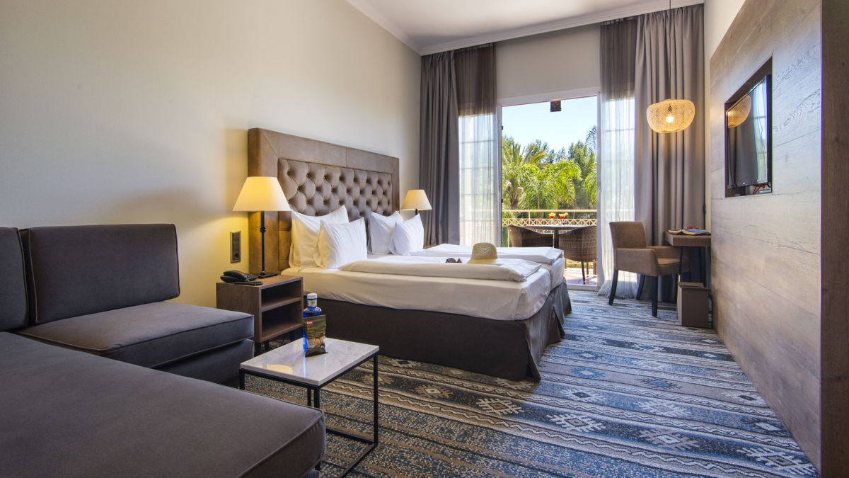 Tágas, afrikai elemekkel díszített Classic Class kétágyas szobák a golfpályára néző erkéllyel vagy terasszal rendelkeznek. 11 éves korig egy gyermek számára kanapéággyal foglalható. Területe: 30 nm