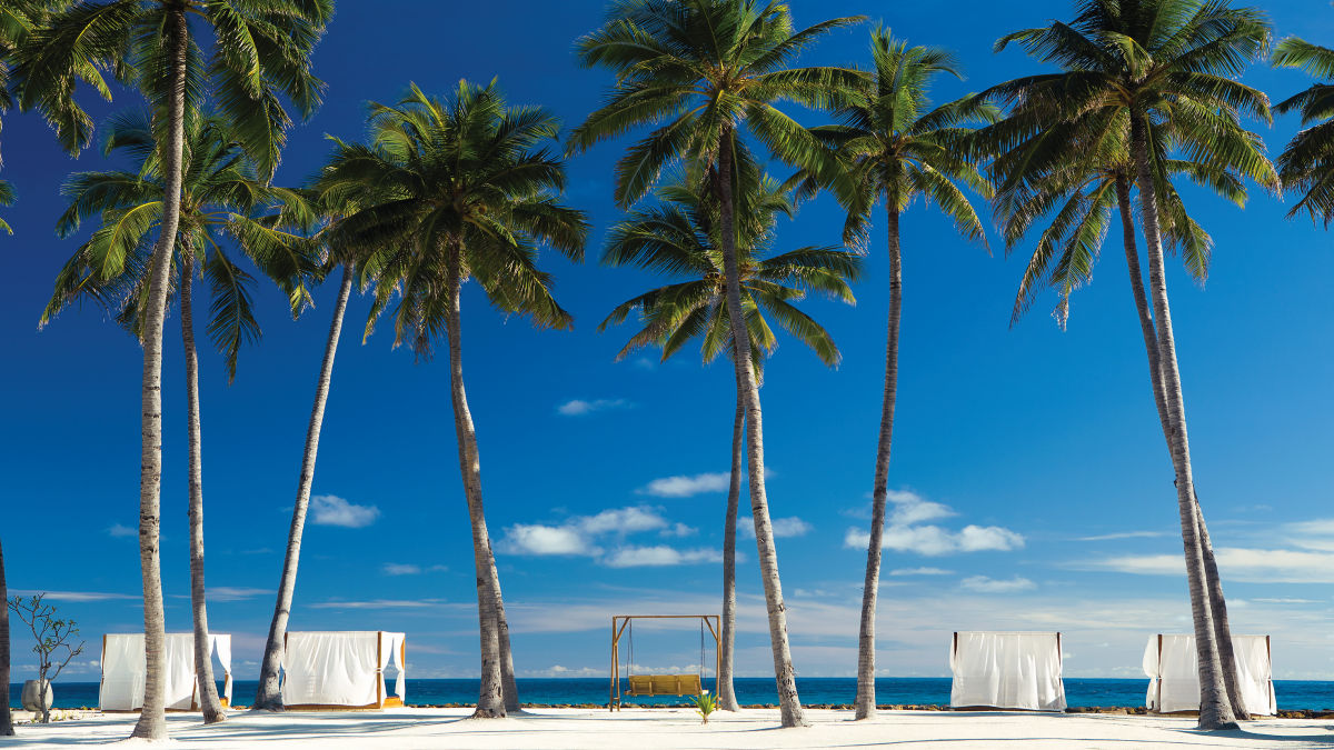Strand: a trópusi növényekkel borított, hosszan elnyúló fehér homokos tengerparttal rendelkező szigeten egyes villákból közvetlen kijárás biztosított a strandra.