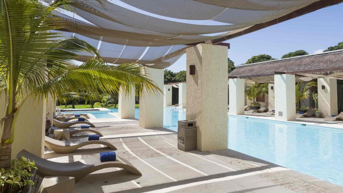 Világos és tágas szobák modern belső kialakítással, vad trópusi kertekre néző bútorozott terasszal.