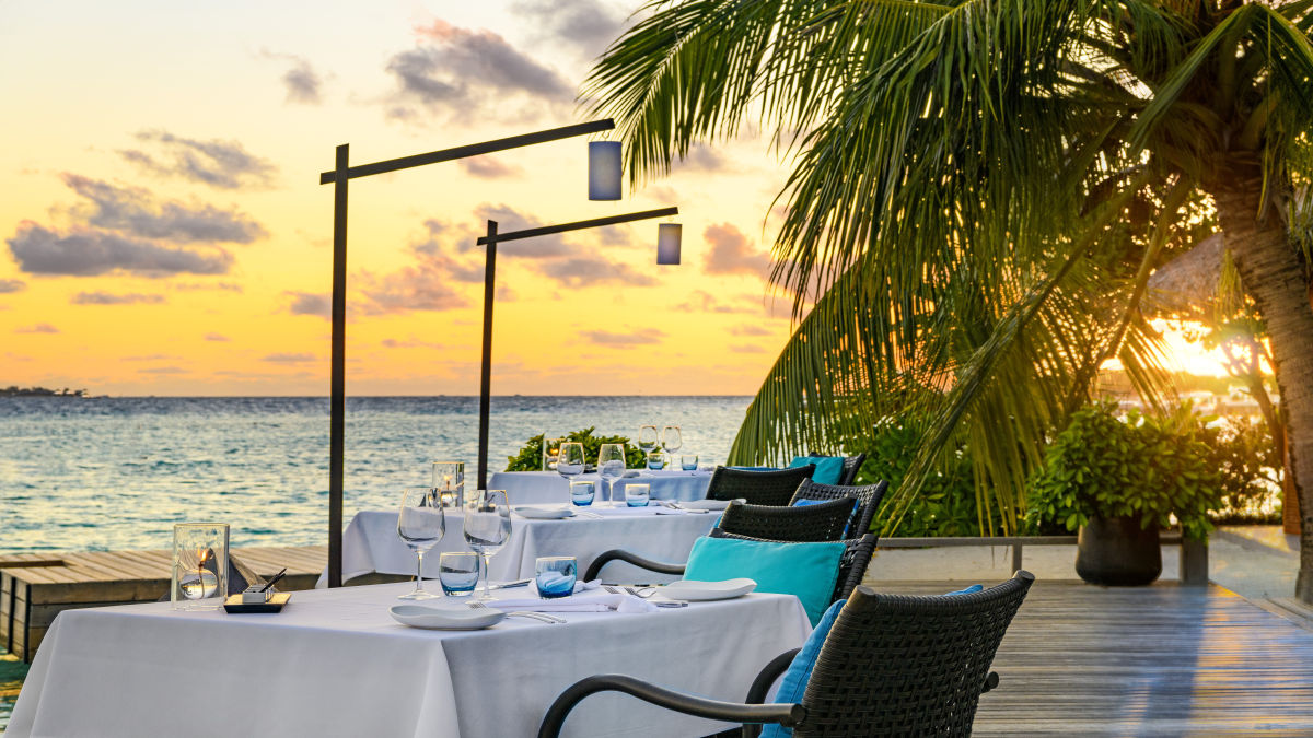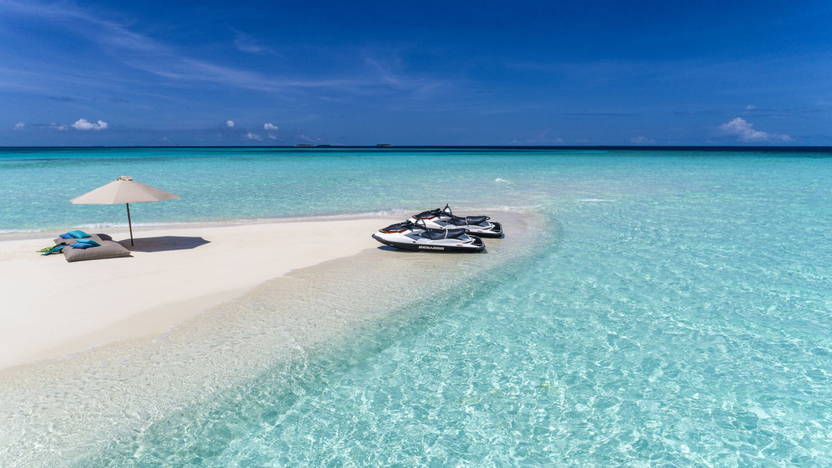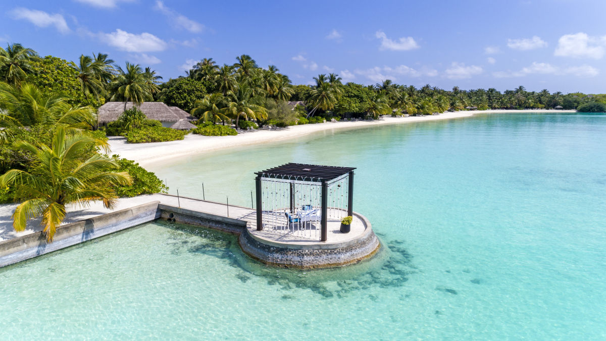 Strand: A resort egy korallszigeten található, amelyet fehér homokos part és élő korallok vesznek körül.